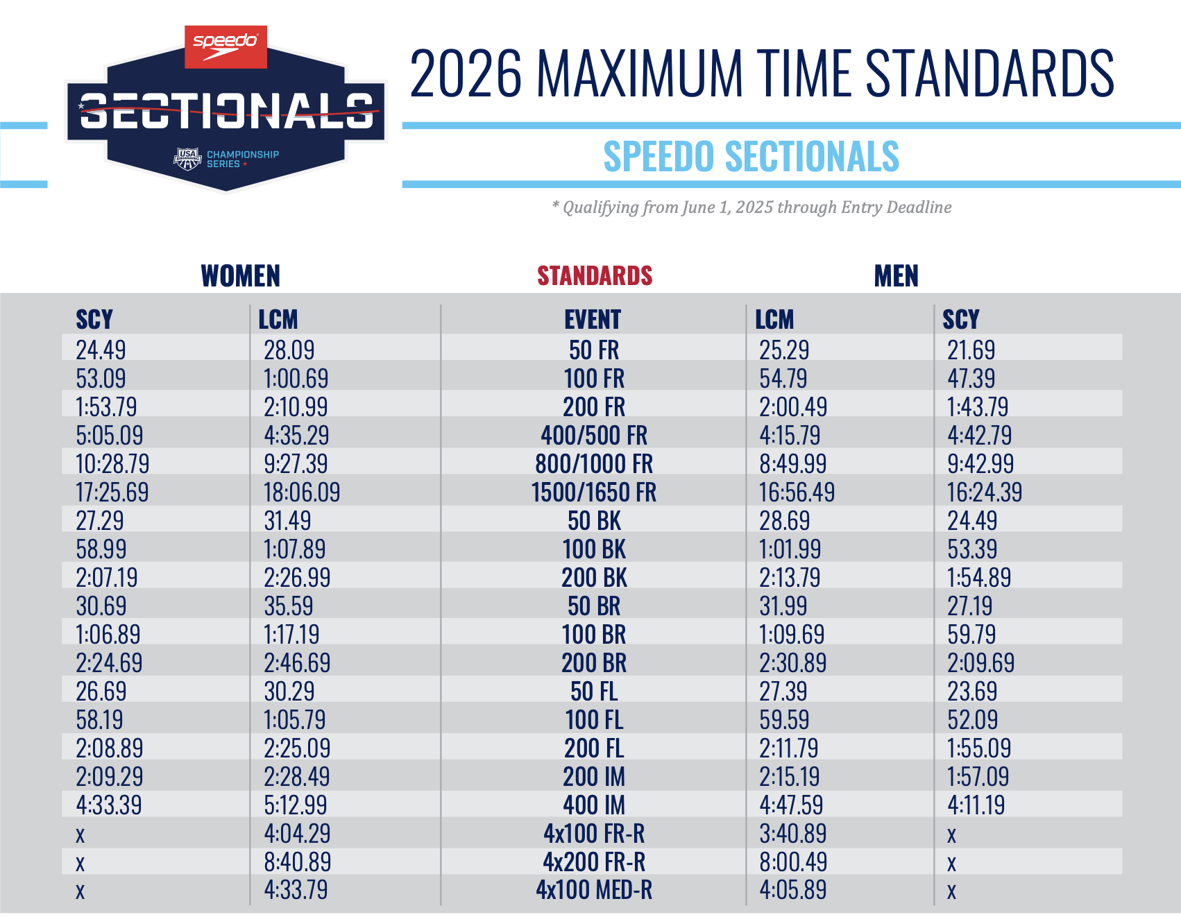 Sectionals Time Standards
